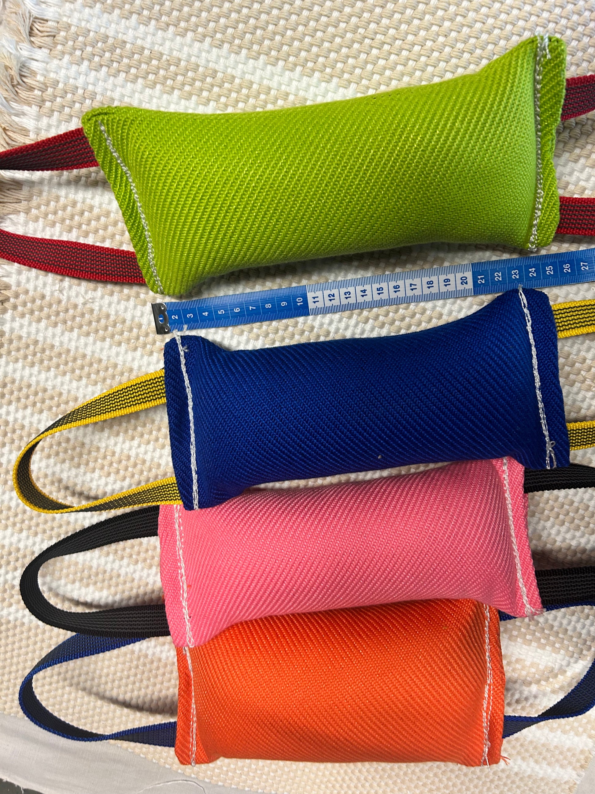 Realizzato in tessuto resistente (tela francese o juta), è pensato per durare nel tempo anche durante le sessioni più vivaci.